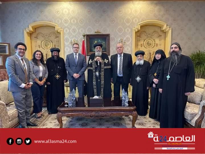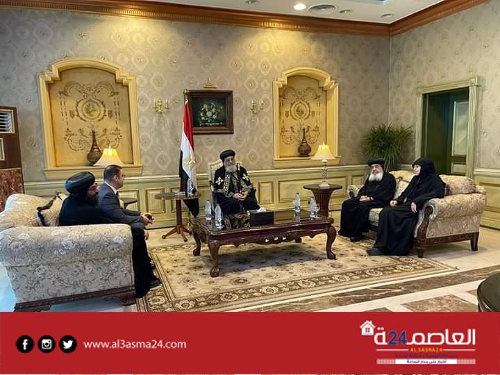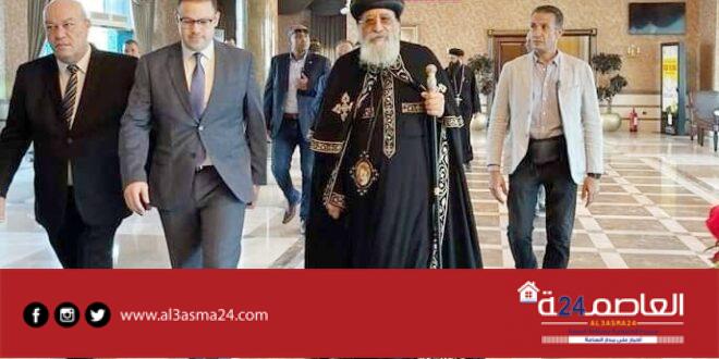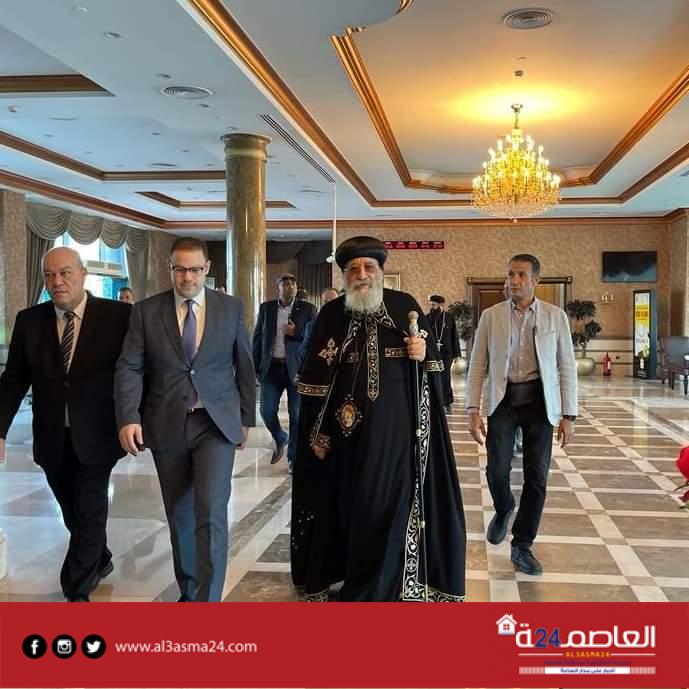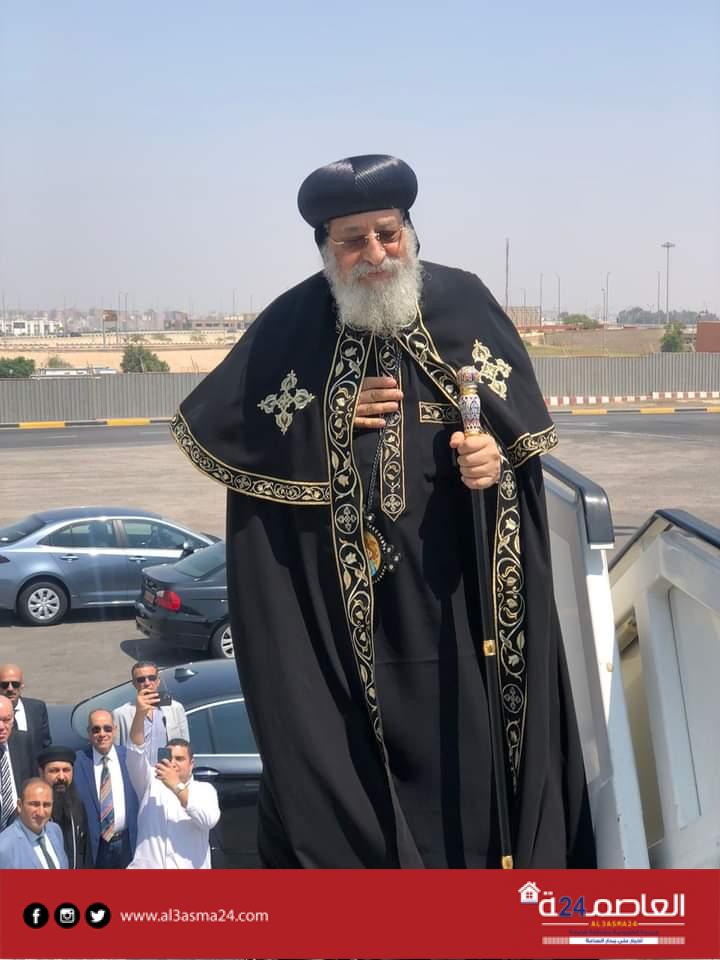 كان في استقبال قداسته بمطار القاهرة الدولي السيد مجدي إسحاق رئيس شركة ميناء القاهرة الجوي وقيادات المطار