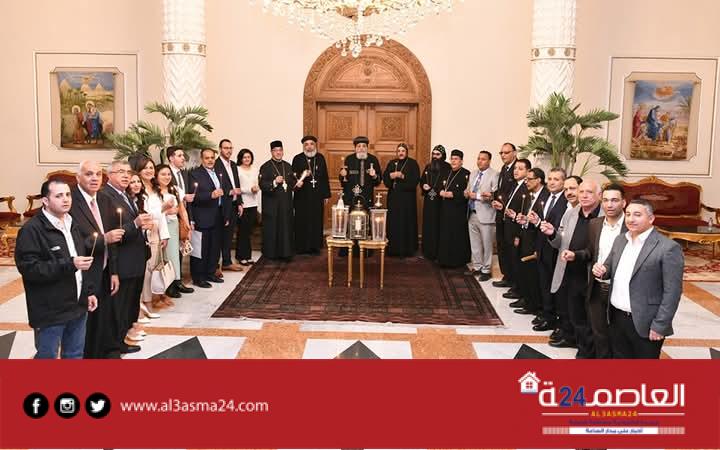 استقبل قداسة البابا تواضروس الثاني في المقر البابوي بالقاهرة اليوم الخميس، الآباء كهنة وخدام رابطة القدس بالقاهرة، حيث سلموا لقداسته النور المقدس المأخوذ من النور الذي يخرج من قبر السيد المسيح يوم سبت النور (السبت الماضي)، والذي أرسله نيافة الأنبا أنطونيوس مطران القدس والكرسي الأورشليمي والشرق الأدنى، لتتبارك به الكنائس القبطية في مصر