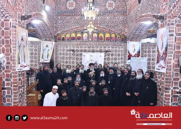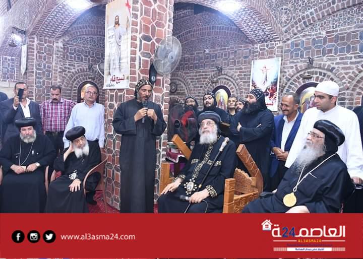 وصلى قداسة البابا صلاة الشكر ثم استمع لشرح لمراحل العمل بالدير قدمه الراهب القس تيموثاوس النقلوني المشرف على تأسيس الدير، الذي أشار إلى أن الدير يجري بناؤه على طراز الأديرة القبطية القديمة، حيث استخدم فيه الطوب الأحمر، الذي تم شراؤه من البيوت القديمة التي يتم هدمها