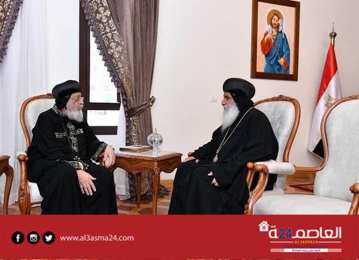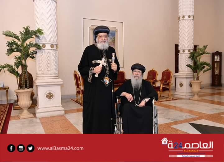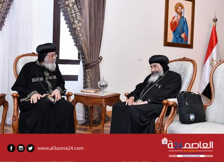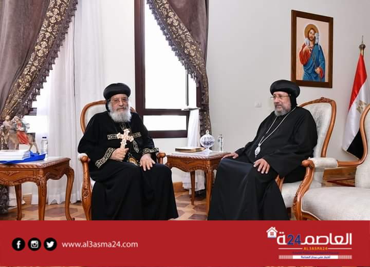 كما استقبل قداسته الأب القمص سرجيوس سرجيوس وكيل البطريركية بالقاهرة، والمهندس رفيق الطوخي مدير الديوان البابوي بالقاهرة.