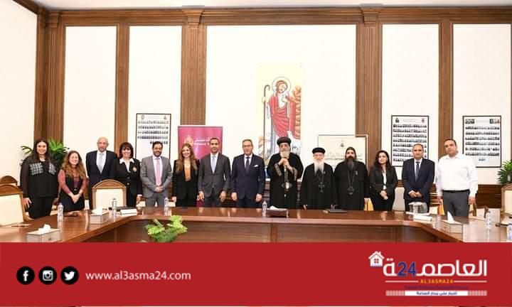حضر توقيع البروتوكول قداسة البابا تواضروس الثاني والسيد محمد الأتربي رئيس مجلس إدارة بنك مصر
