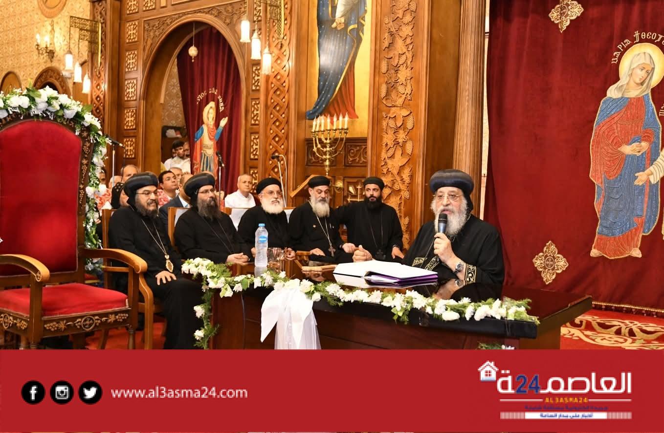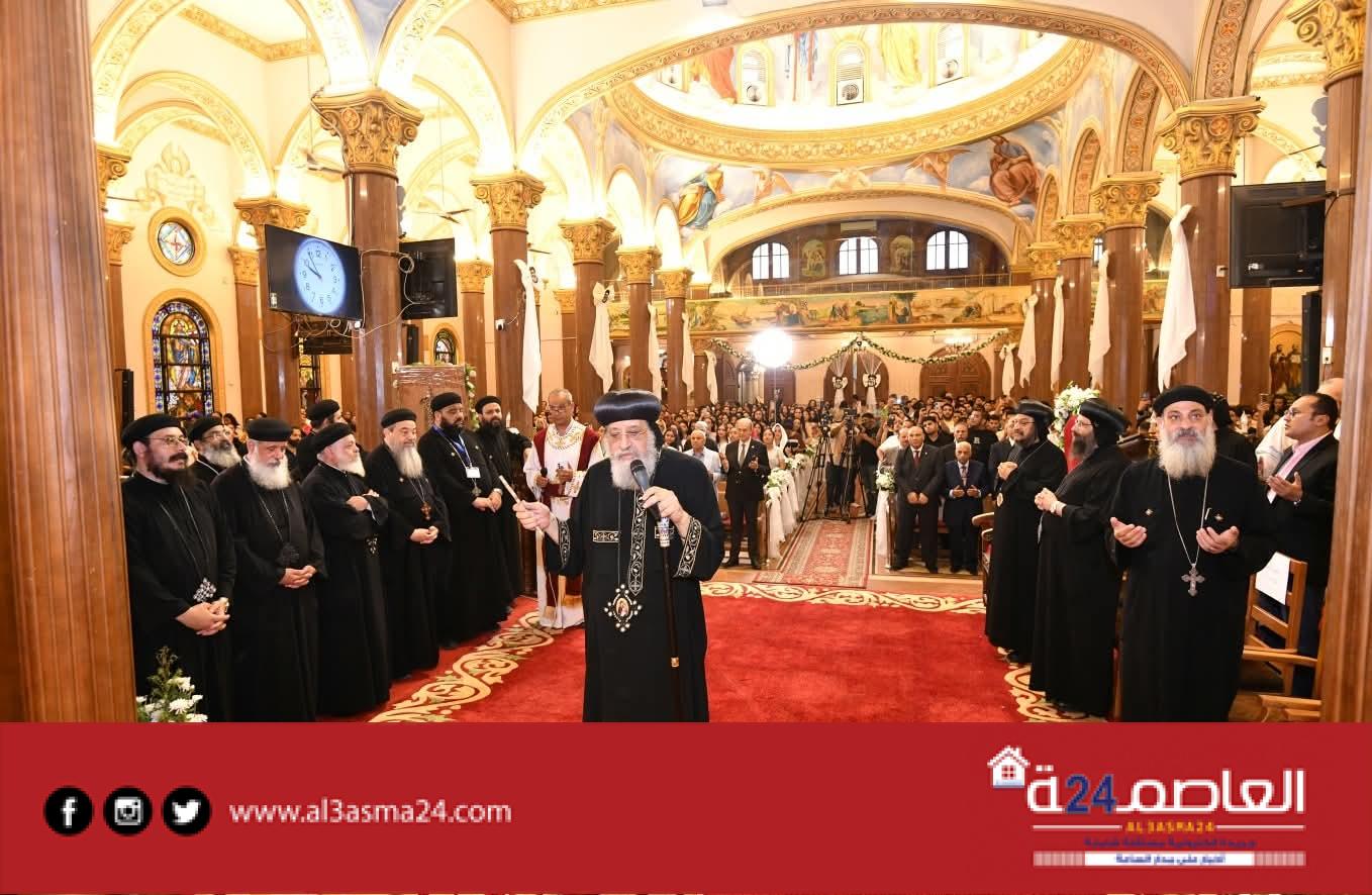 واستكمل قداسته سلسلة “حكايات الشجرة المغروسة”، وتناول اليوم موضوع “إكليل الشهداء”، وقرأ جزءًا من الأصحاح الخامس في رسالة القديس يوحنا الرسول الأولى والأعداد (١ – ٤)، وأشار إلى عبارة “المجد لك يا سيدنا وملكنا المسيح، فخر الرسل، إكليل الشهداء، تهليل الصديقين، ثبات الكنائس، غفران الخطايا” في بدء قانون الإيمان