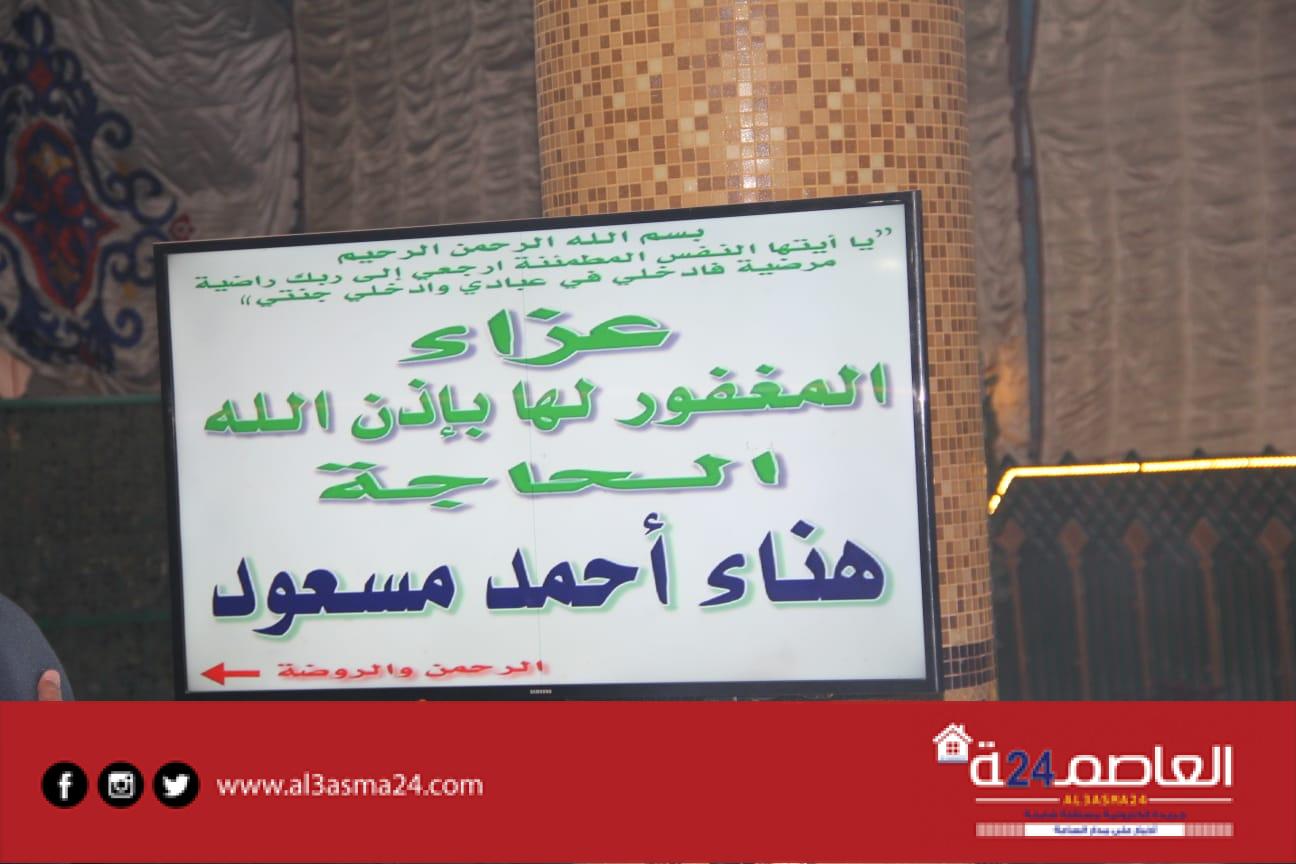 أقيم مساء اليوم السبت عزاء السيدة ” هناء المسعود ” شقيقة النائب البرلماني محمد المسعود ” عضو مجلس النواب السابق ورئيس مجلس إدارة مجموعة معارض المسعود للسيارات ” وذلك بمسجد الشرطة بطريق صلاح سالم