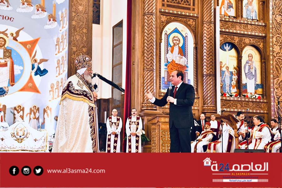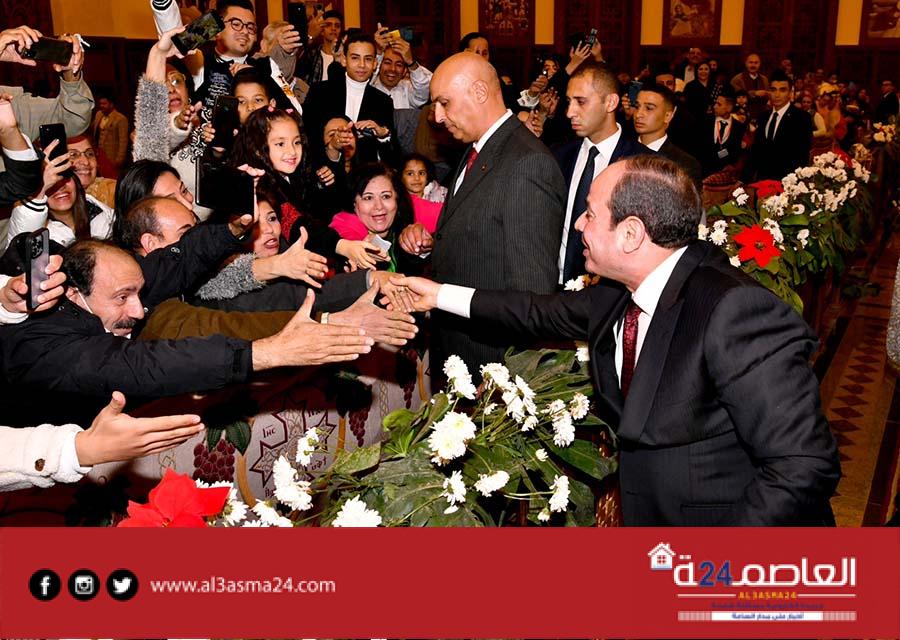 صافح الرئيس عبد الفتاح السيسي رئيس الجمهورية عشرات الأقباط بمجرد وصوله كاتدرائية ميلاد المسيح بالعاصمة الإدارية الجديدة وذلك للتهنئة بعيد الميلاد المجيد