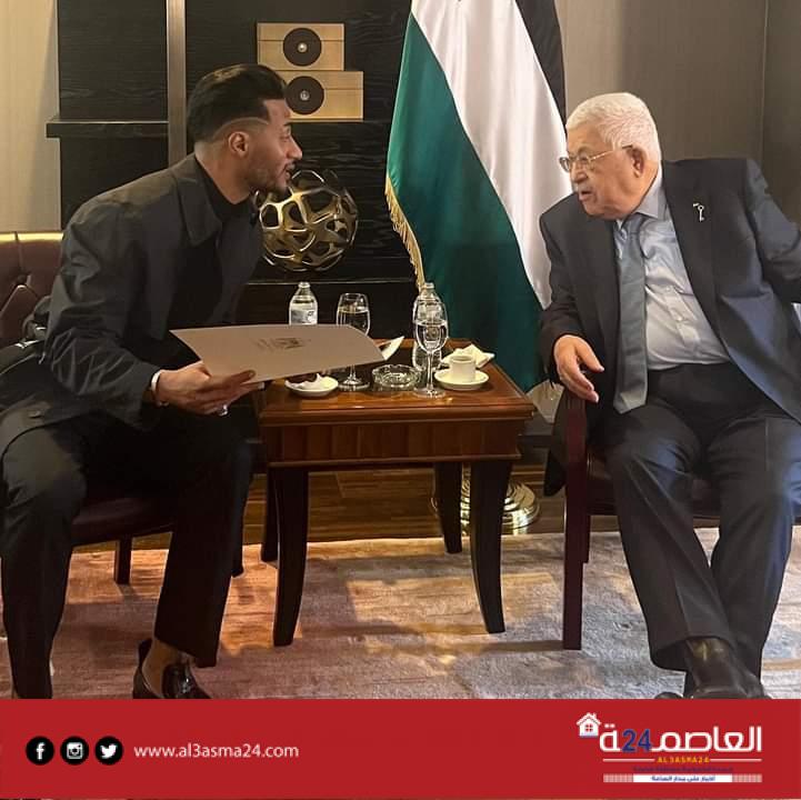 استقبل الرئيس محمود عباس، مساء يوم الإثنين، الفنان المصري محمد رمضان في مقر إقامته بنيويورك
