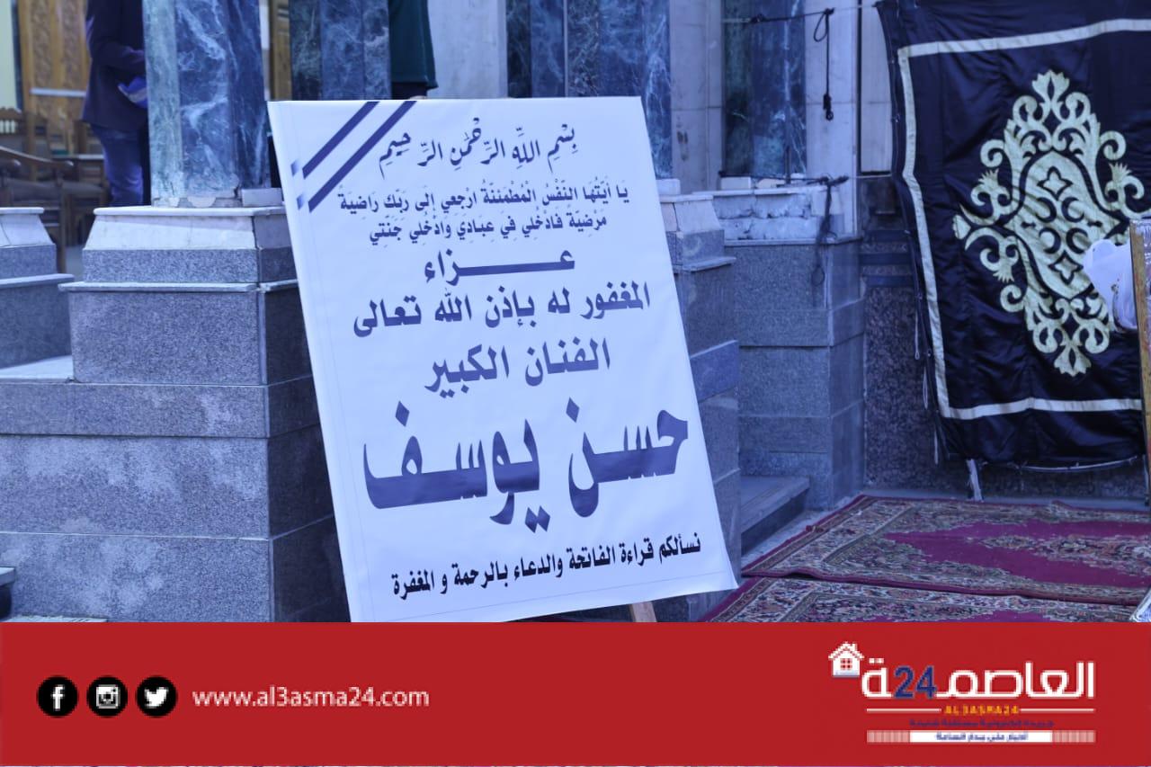 أقيم مساء أمس السبت الثاني من نوفمبر داخل مسجد عمر مكرم بميدان التحرير عزاء الفنان الراحل حسن يوسف بحضور عدد كبير من الفنانين والإعلاميين والشخصيات العامة أبرزهم جمال وعلاء مبارك نجلا الرئيس الراحل حسني مبارك