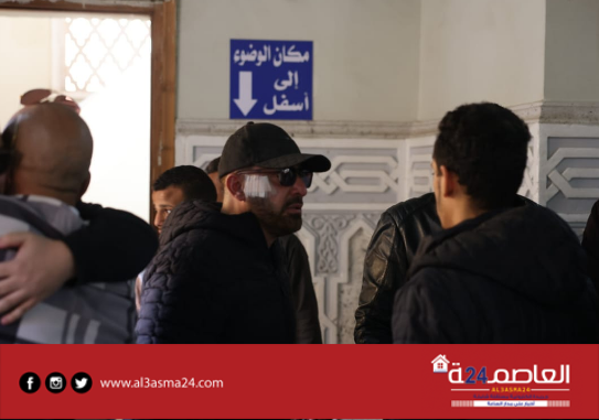 شاهد بالصور | الفنان باسم سمرة ” يشيع جثمان والدته الراحلة بمسجد الصباح بالهرم والنجم | أحمد السقا يسانده