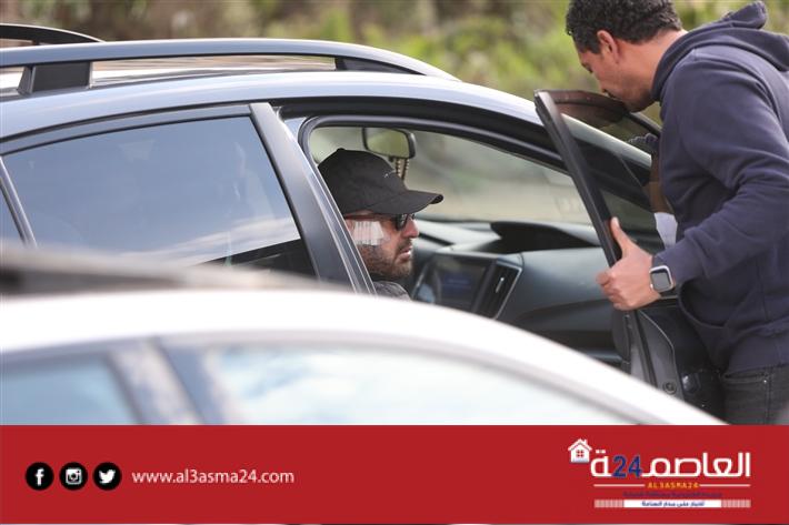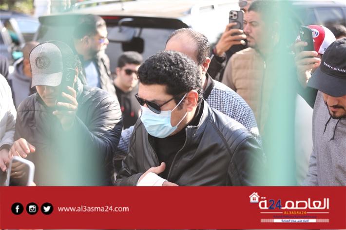 باسم سمرة خلال تشيع جثمان والدته مرتدي الكمامة