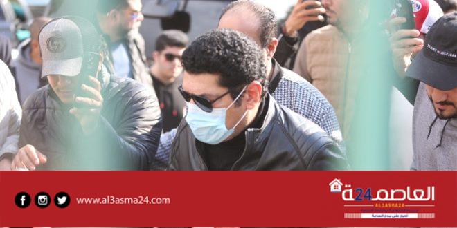 شاهد بالصور | الفنان باسم سمرة ” يشيع جثمان والدته الراحلة بمسجد الصباح بالهرم والنجم | أحمد السقا يسانده