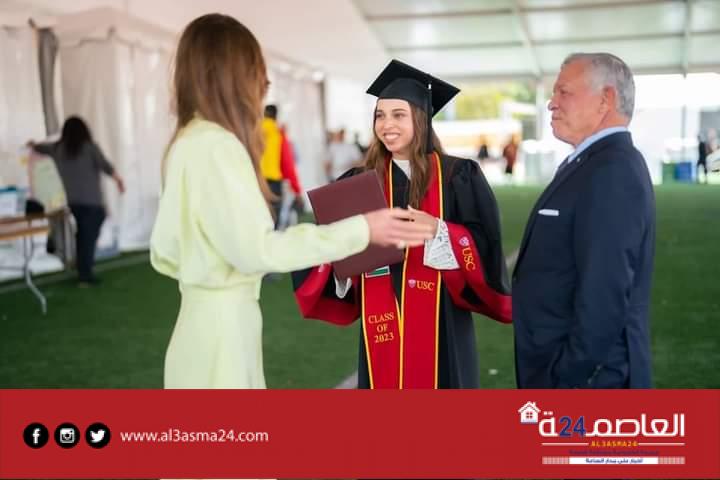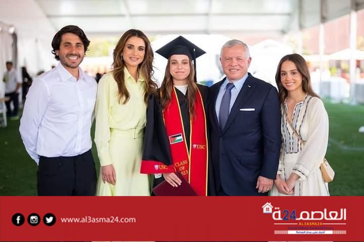 احتفلت الملكة رانيا العبدالله، زوجة العاهل الأردني الملك عبدالله الثاني، بتخرج ابنتها الأميرة سلمى من جامعة كاليفورنيا الجنوبية بالولايات المتحدة الأمريكية