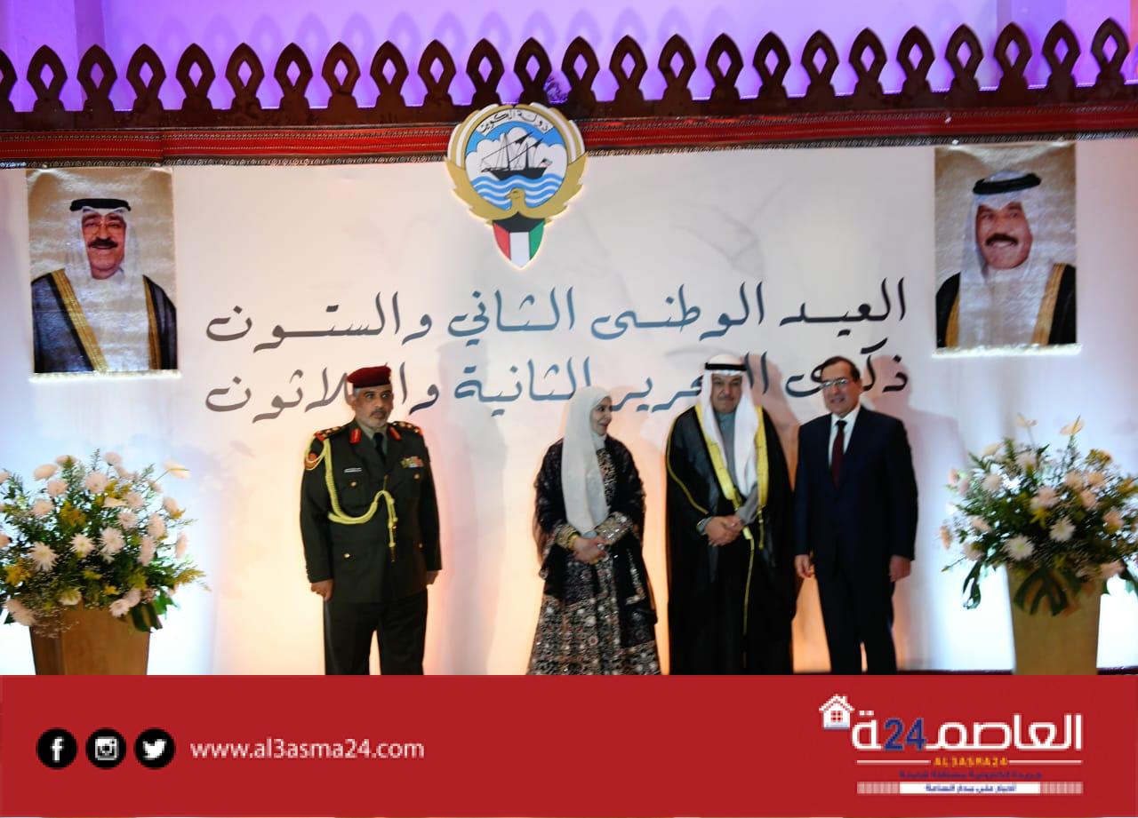 احتفلت مساء اليوم السبت سفارة الكويت بالقاهرة بالعيد الوطني الثاني والستين وعيد التحرير الثاني والثلاثين، بحضور نحو 10 وزراء وكبار المسؤولين وأعضاء البرلمان والشيوخ والشخصيات العامة