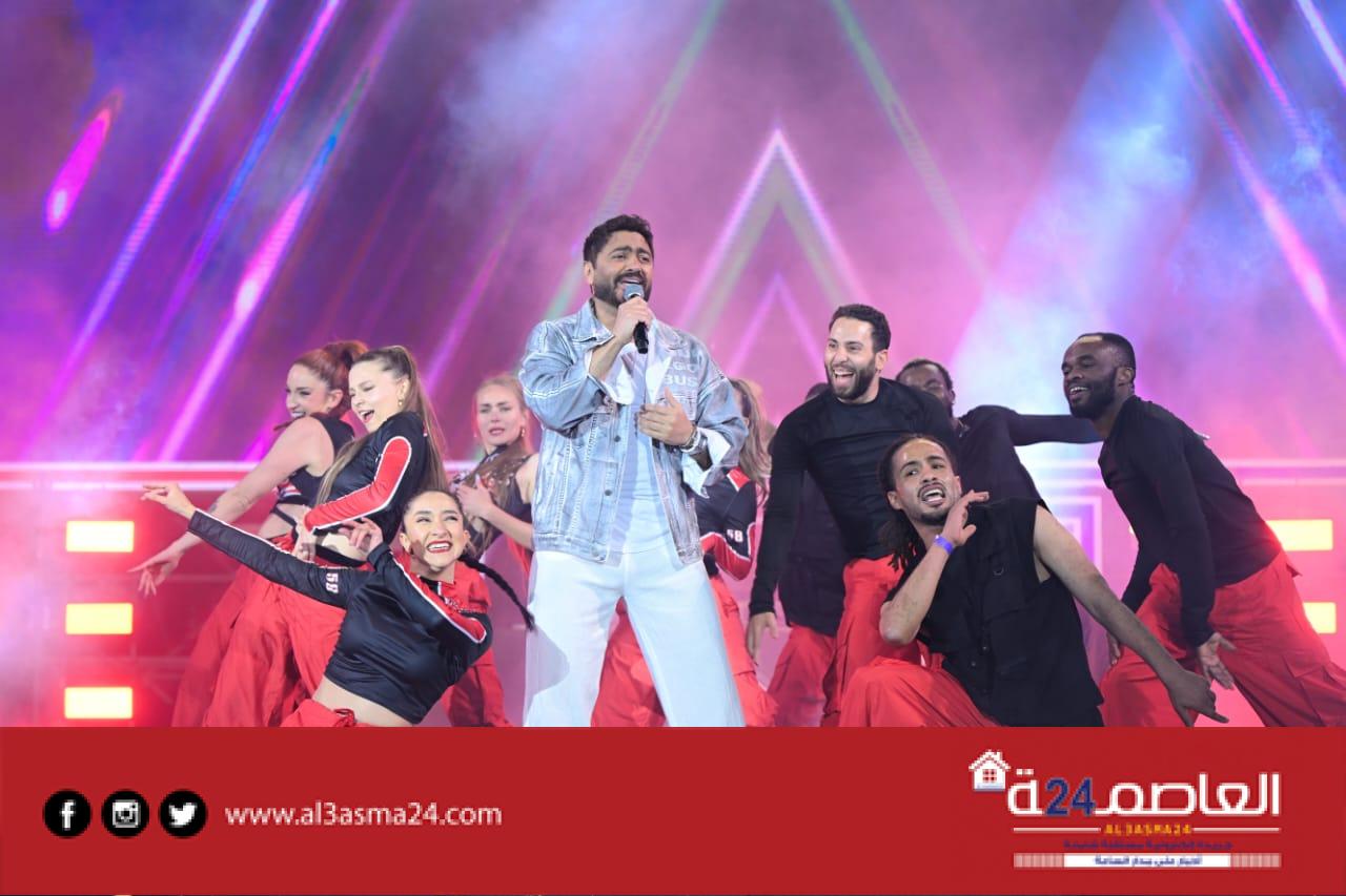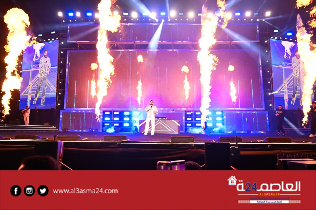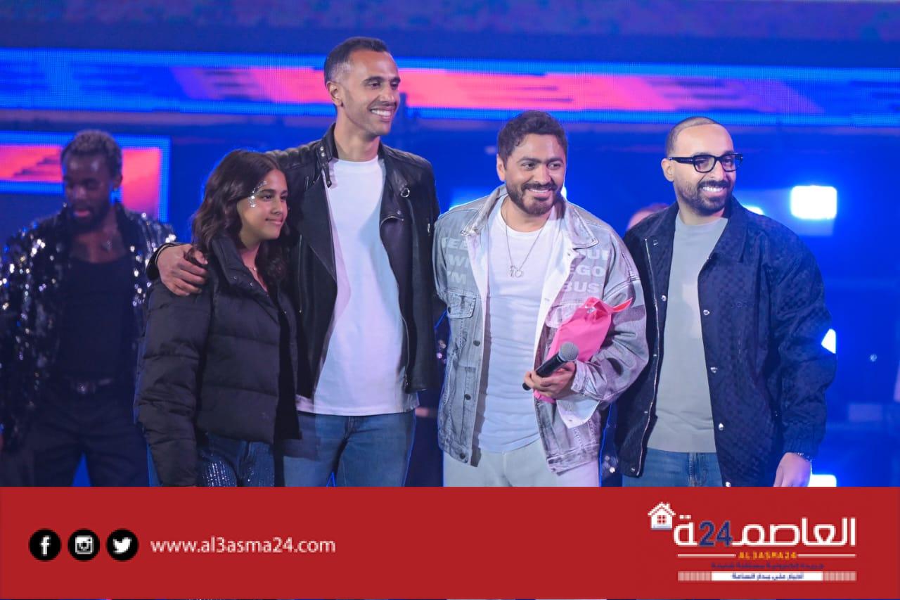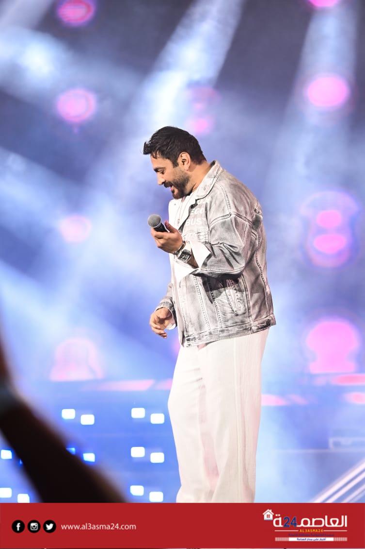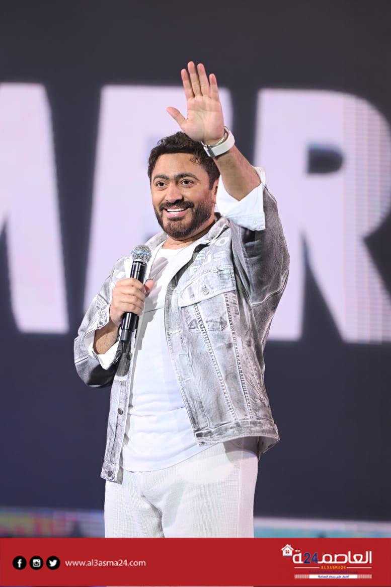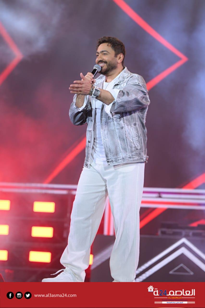 حضر تامر حسني بكامل اناقته مرتديا ملابس كاجوال وكان فى استقباله منظم الحفل مصطفي أبو دشيش “موستيك” وصعد على خشبة المسرح وسط هتافات وصيحات إعجاب الجمهور الذي شاركه غناء “ميدلي” لأشهر أغانيه وسط المزيد من الأجواء الأستثنائية الساحرة