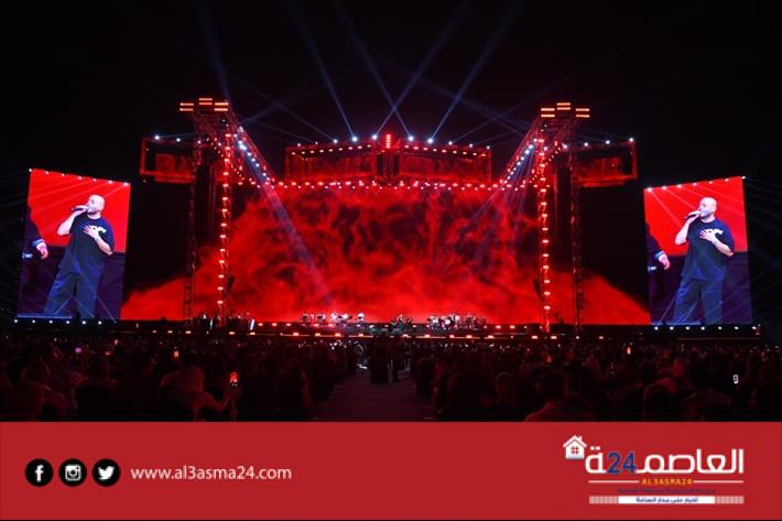 وتفاعل الجمهور مع أغاني تامر الرومانسية، وطلب منهم إضاءة كشافات هواتفهم ورددوا معه أغنية “خليني في حضنك
