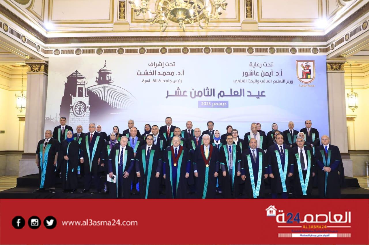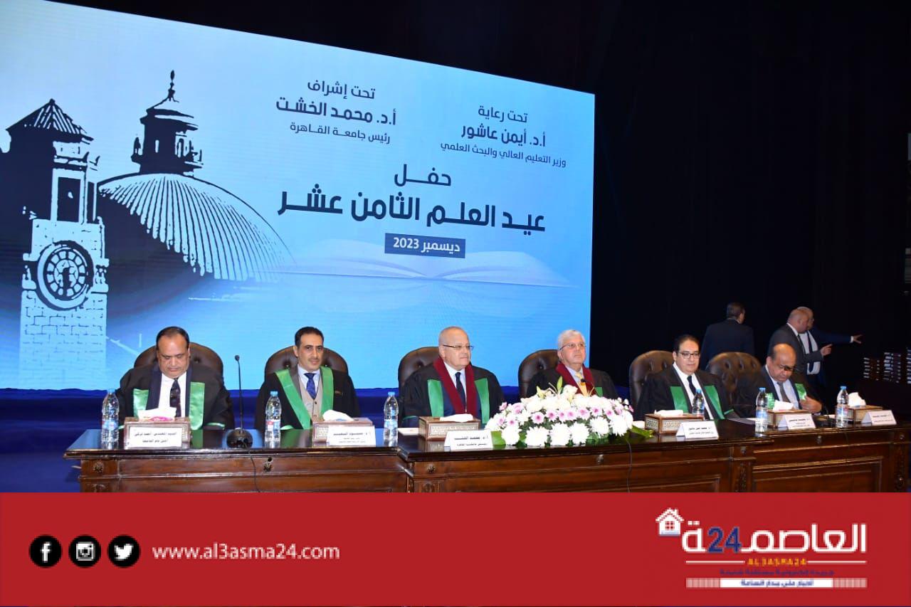 شهدت جامعة القاهرة، مساء اليوم الأربعاء، برعاية الدكتور أيمن عاشور، وزير التعليم العالي والبحث العلمي، والدكتور محمد الخشت، رئيس الجامعة، احتفالية عيد العلم الـ 18 لتكريم عدد من الوزراء و60 شخصية من علمائها ومفكريها وباحثيها الحاصلين على جوائز الدولة والجامعة بأنواعها في مختلف المجالات العلمية عن عامي 2022 و2023