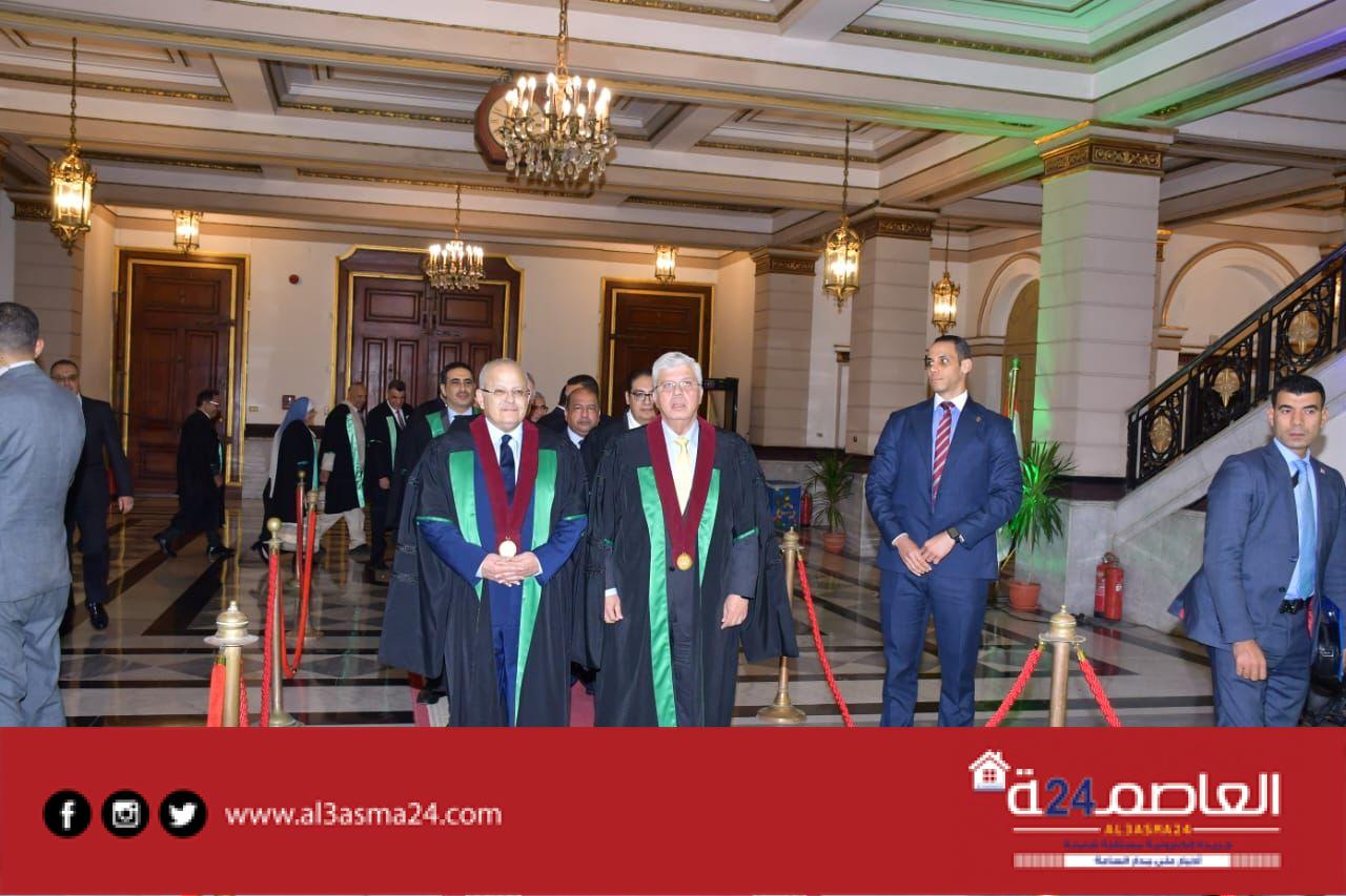 بدأت مراسم احتفالية عيد العلم، بصورة تذكارية لمجلس الجامعة أمام قاعة أحمد لطفي السيد، ثم دخول مجلس الجامعة بطابور عرض، ثم السلام الجمهوري، وتلاوة آيات من القرآن الكريم، ثم عرض فيلم تسجيلي عن جامعة القاهرة، وعرض الفيلم التسجيلي للفرع الدولي للجامعة، الذي يعد الأول من نوعه في جامعة حكومية مصرية