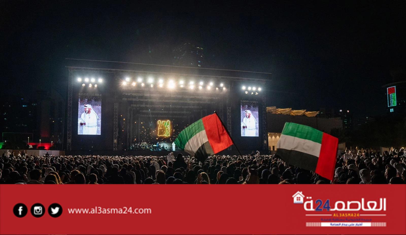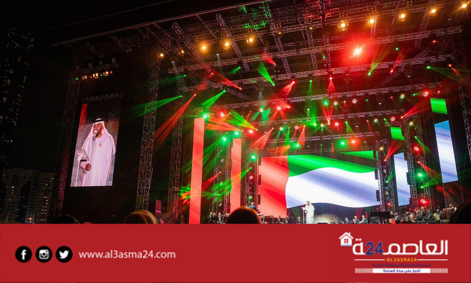 وتنقل الفنان حسين الجسمي، مع الجمهور الكبير الحاضر “المكتمل العدد” بين مجموعة من الأغنيات الوطنية والعاطفية، مباركاً بذكرى تأسيس وقيام الدولة، قائلاً: “مساء الخير يا وطن .. مساء الخير على أهل هذا الوطن وكل من على هذه الارض الطيبة”، وأضاف: “أحييكم من دار زايد ونبارك للجميع بهذا اليوم اللي أعلن فيه الاتحاد الغالي لإماراتنا داعياً الله عز وجل أن يديم علينا نعَمه، وأن يحفظ دولتنا وقادتنا الكرام، ويوفقنا لما هو خير في مسيرة بناء الوطن وتقدمه.. وكل عام وانتم بخير”، شاكراً دائرة الثقافة والسياحة – أبوظبي على جهودهم الكبيرة من أجل إخراج الحفل بالشكل الذي يليق بالمناسبة الغالية على قلوب الجميع.
