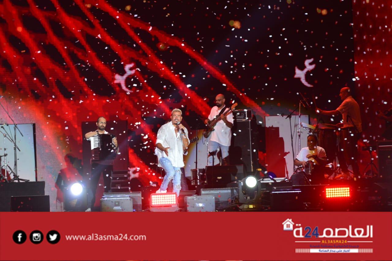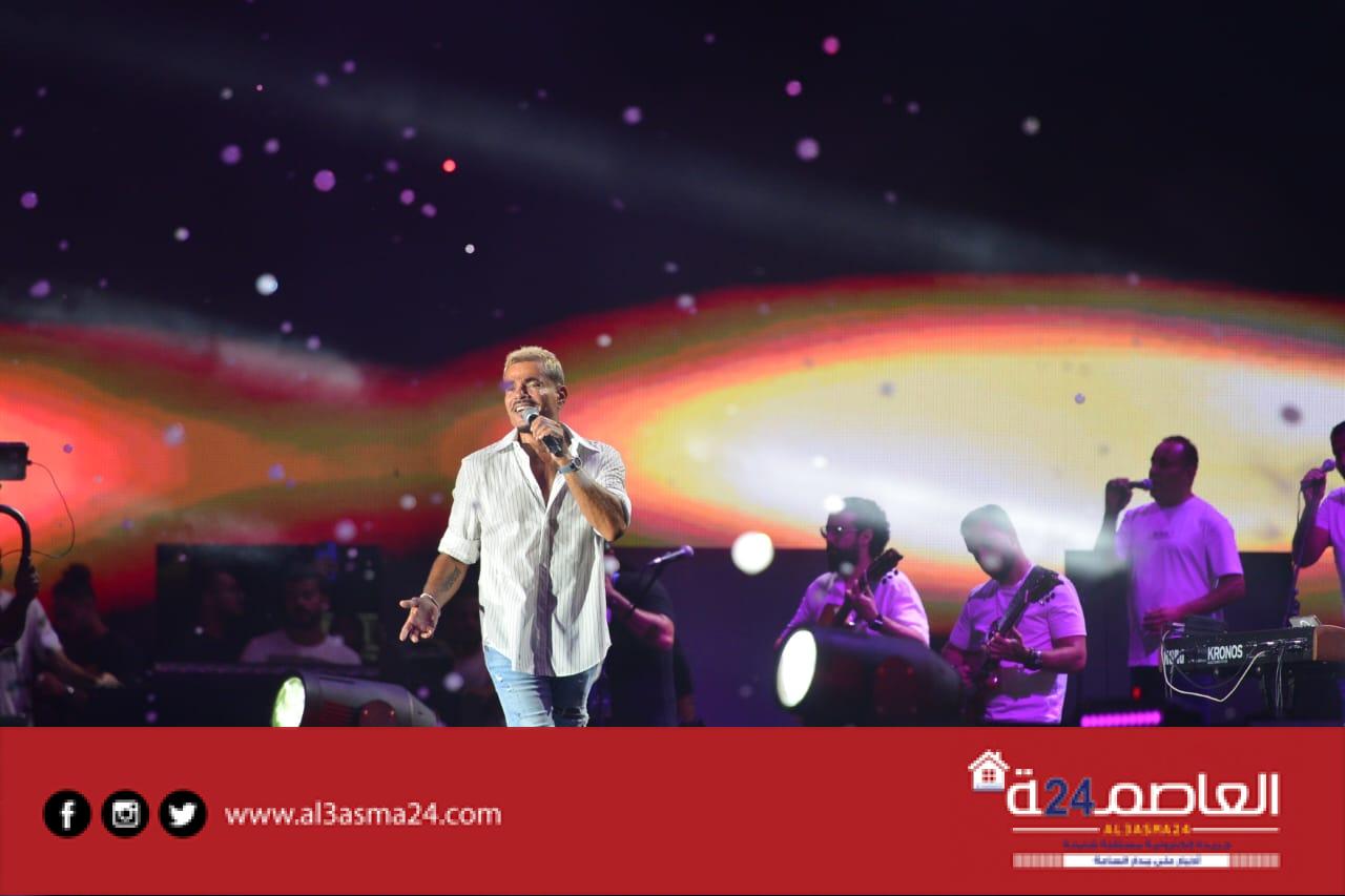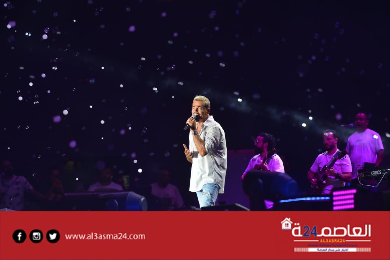ووسط إطلاق الألعاب النارية قدم النجم عمرو دياب عددا من أغانيه المفضلة لجمهوره، منها: “الحظ، برج الحوت، راجع”، إلى جانب انتشار الألعاب النارية، والتي شهدت تفاعلا كبيرا من الجمهور