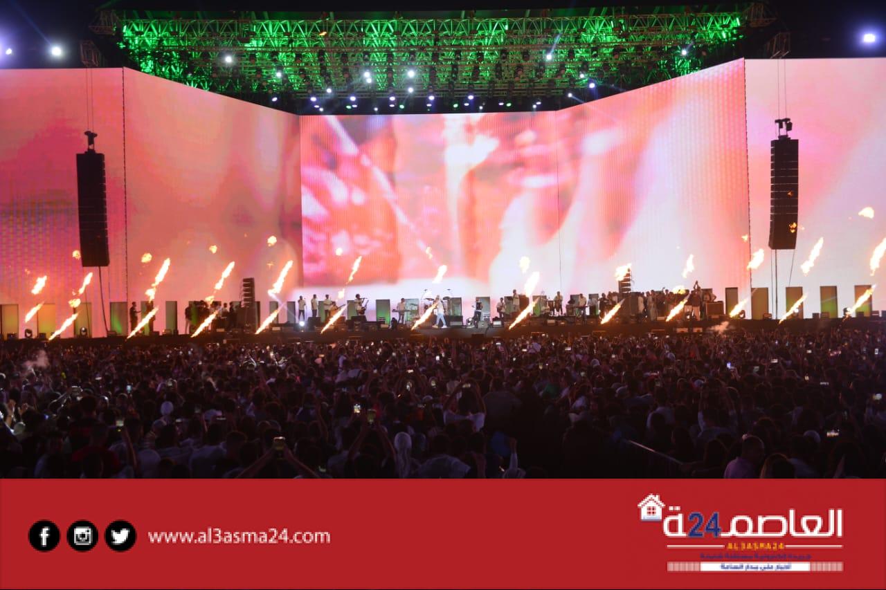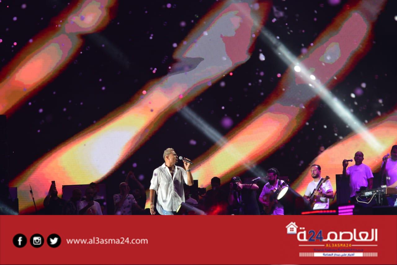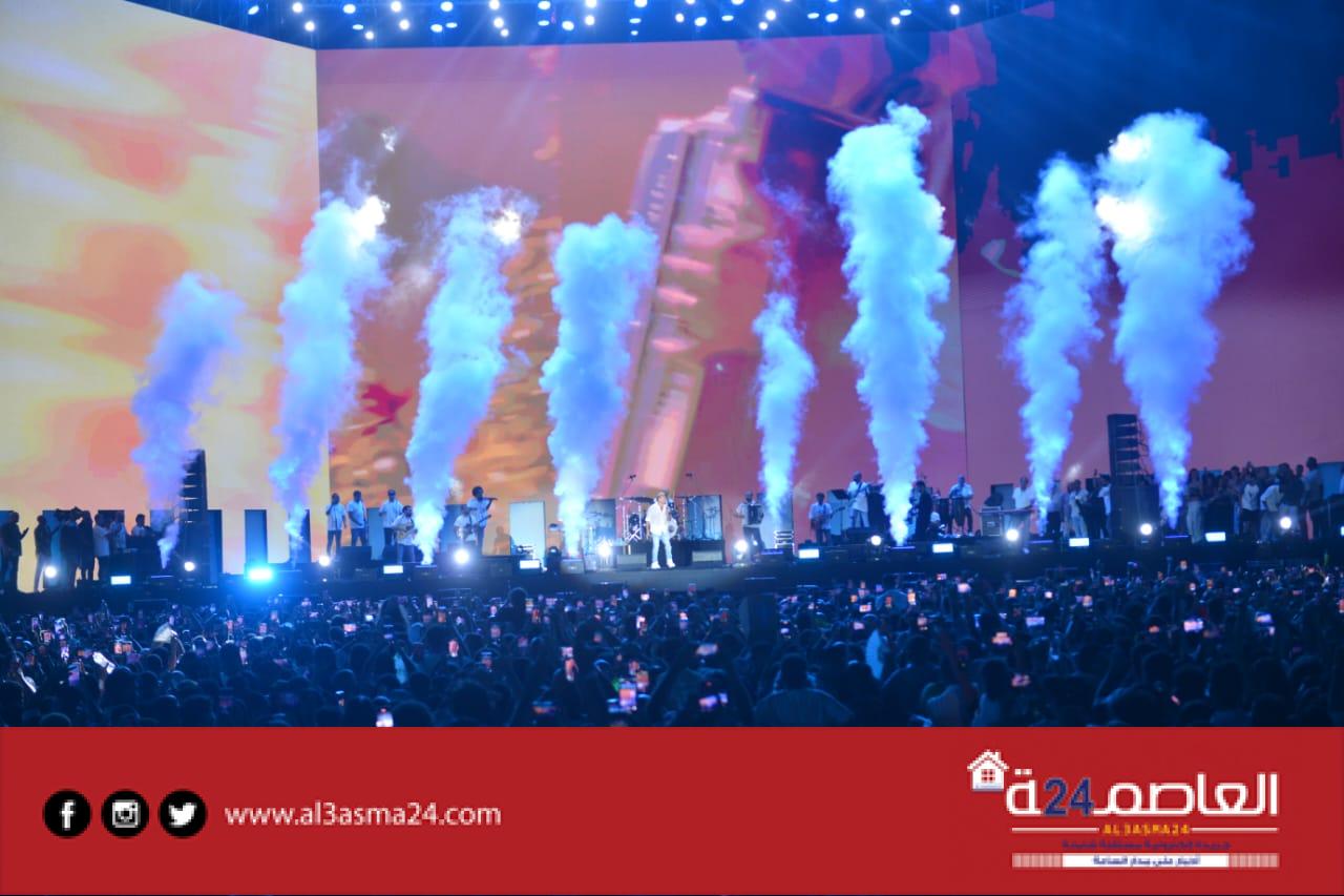 ووسط إطلاق الألعاب النارية قدم النجم عمرو دياب عددا من أغانيه المفضلة لجمهوره، منها: “الحظ، برج الحوت، راجع”، إلى جانب انتشار الألعاب النارية، والتي شهدت تفاعلا كبيرا من الجمهور