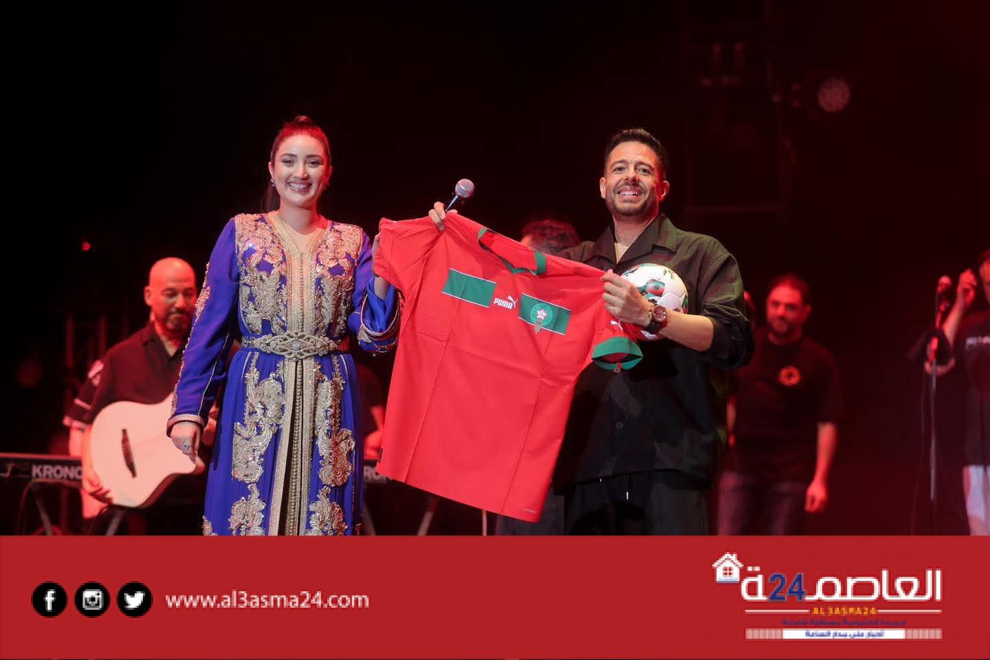 وفي لقطة مميزة لحماقي ارتدى تي شيرت المنتخب المغربي ووقع على كرة كأس العالم لكرة القدم التي تستضيفها المغرب بعد 5 سنوات، وأشاد بالمنتخب المغربي بعد حصوله على المركز الرابع بكأس العالم لكرة القدم في دورته الأخيرة، والمستوى الهائل الذي يقدمه المنتخب مؤخرا مداعبا الجمهور قائلا “هحترف في منتخب المغرب