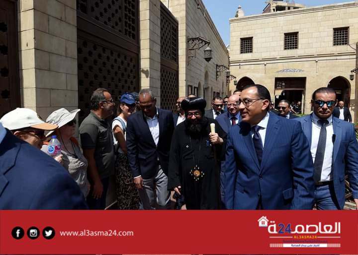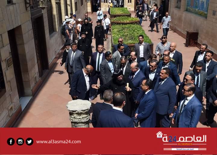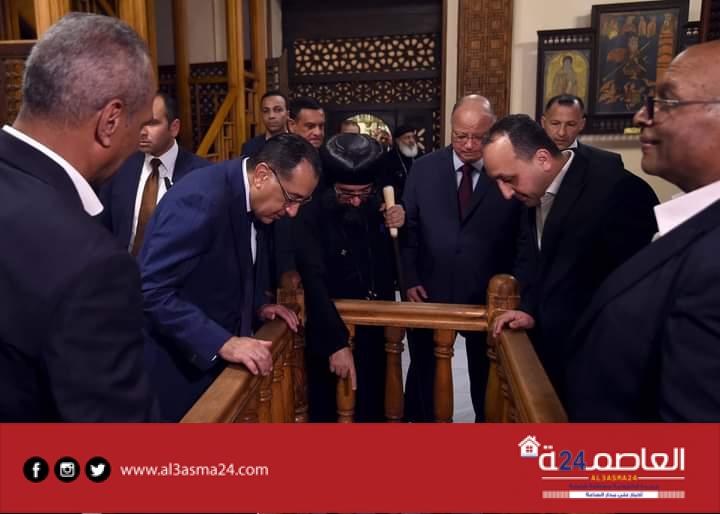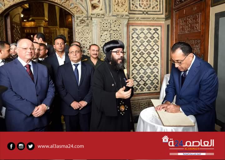 واستمع مدبولي لشرح حول تطوير الكنيسة المعلقة من الانبا يوليوس اسقف عام النائب البابوي لكنائس مصر القديمة، وتفقد مدبولي أركان الكنيسة