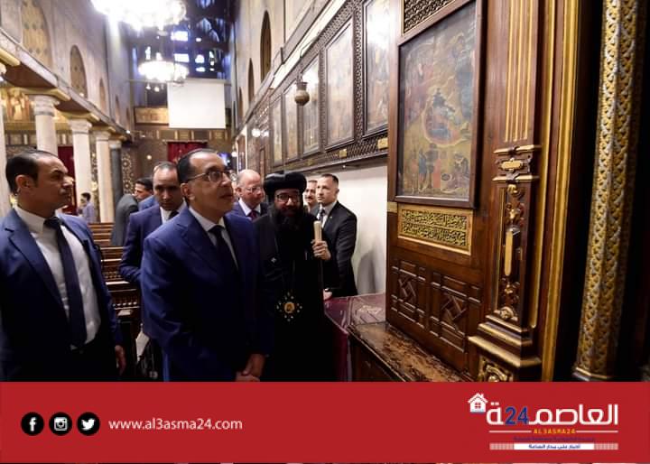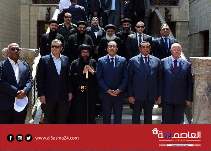 واستمع مدبولي لشرح حول تطوير الكنيسة المعلقة من الانبا يوليوس اسقف عام النائب البابوي لكنائس مصر القديمة، وتفقد مدبولي أركان الكنيسة
