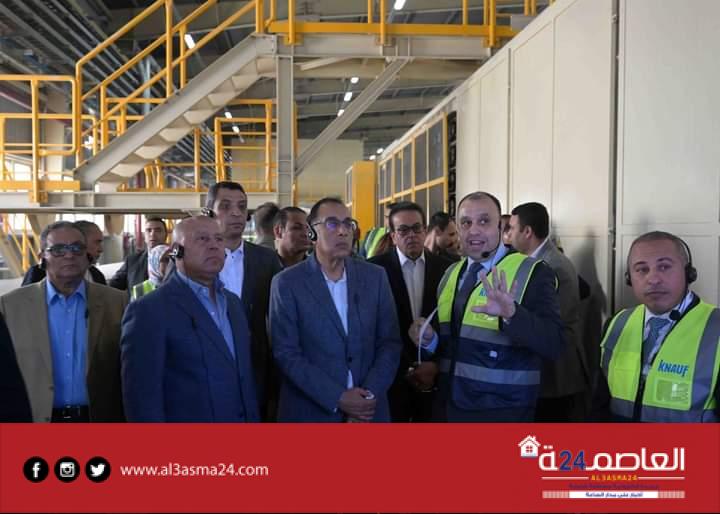 توجه الدكتور مصطفى مدبولي، رئيس مجلس الوزراء، ومرافقوه، لتفقد مصنع شركة “كناوف” الألمانية للألواح الجبسية والمنتجات الجبسية، وذلك خلال زيارته اليوم لمحافظة السويس التي تشمل عددًا من المشروعات في مجالات متنوعة من بينها الصحية والتعليمية والسكنية والخدمية