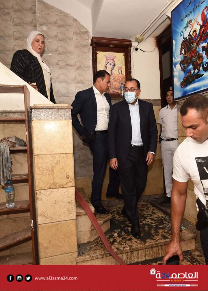 تفقد الدكتور مصطفى مدبولي، رئيس مجلس الوزراء، كنيسة الشهيد “أبى سيفين” في منطقة المنيرة بمحافظة الجيزة؛ للوقوف على تطورات موقف الحادث المؤلم، والحريق الذي وقع صباح اليوم بالكنيسة، يرافقه الدكتور خالد عبدالغفار، وزير الصحة والسكان، والسيدة/نيفين القباج، وزيرة التضامن الاجتماعي، واللواء هشام آمنة، وزير التنمية المحلية، واللواء أحمد راشد، محافظ الجيزة، وعدد من قيادات وزارة الداخلية، وقساوسة الكنيسة.