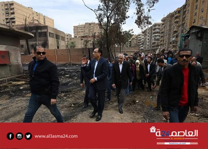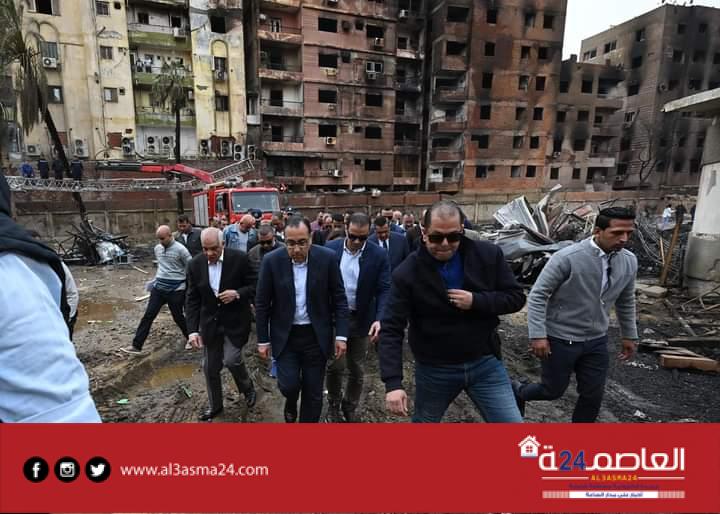 وفور وصوله، تجول رئيس مجلس الوزراء ومرافقوه في أرجاء موقع الحريق، والعمارات السكنية المتضررة من الحادث المؤلم؛ للوقوف على حجم الخسائر التي لحقت بها، كما استمع إلى شرح من محافظ الجيزة عن آثار الحريق التي امتدت لتسبب تضرر واجهات 7 عمارات بشكل كبير وبعض الوحدات، وتم استعراض الإجراءات الفورية التي قامت بها المحافظة في هذا الصدد