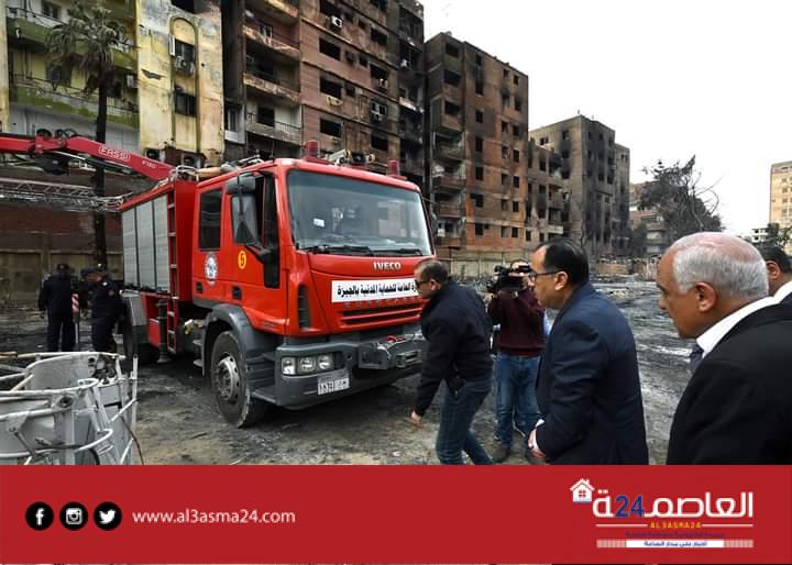 ووجه رئيس الوزراء بأهمية الإطمئنان على السلامة الإنشائية للمبانى، وتشكيل لجنة عاجلة فورية مكونة من شركات المقاولات المعتمدة من محافظة الجيزة، وذلك للوقوف على حجم الضرر وإعداد مقايسات هندسية تضمن الوقت اللازم وتكلفة إعادة المباني لأصلها قبل الحريق