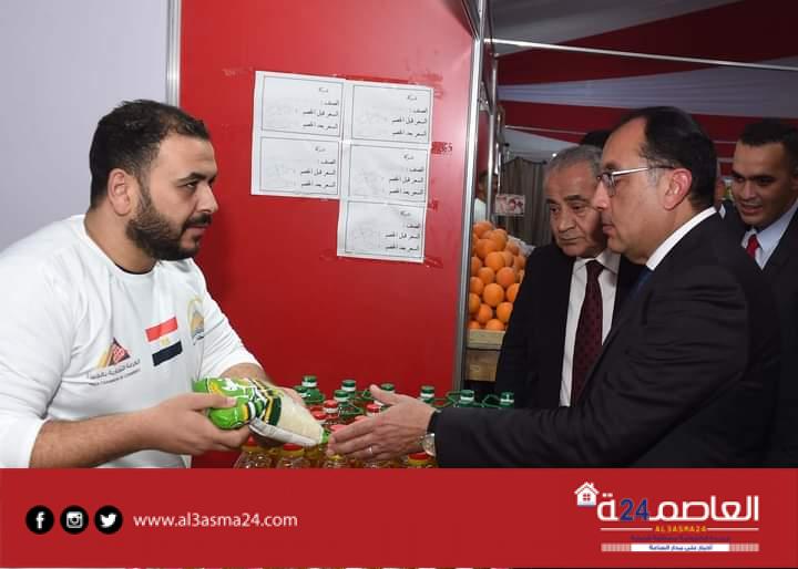 كما تجول رئيس الوزراء بالمنافذ التابعة لوزارة الزراعة التي تقدم منتجات بأسعار مخفضة وتشمل منافذ بيع الأرز واللحوم والدواجن، كما شاهد العروض المقدمة بالمعرض ومنها “كرتونة سلع غذائية” تتضمن أهم السلع الأساسية التي يحتاجها المواطن بأسعار منافسة، فيما اطلع رئيس الوزراء كذلك على أنشطة منفذ بيع الخضراوات والفاكهة التابع لجهاز مشروعات الخدمة الوطنية للقوات المسلحة