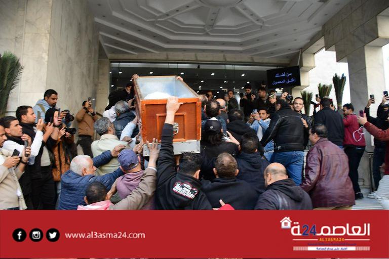 انهار الفنان الكبير – عبد الباسط حمودة في البكاء خلال تشيع جثمان صديق عمره الفنان الكبير أحمد عدوية في جنازة مهيبة بمسجد حسين صدقي بمنطقة المعادي