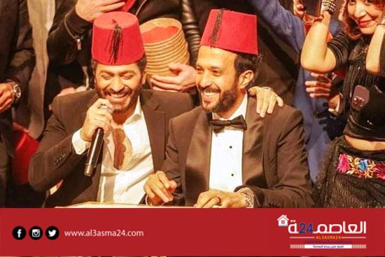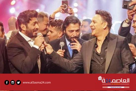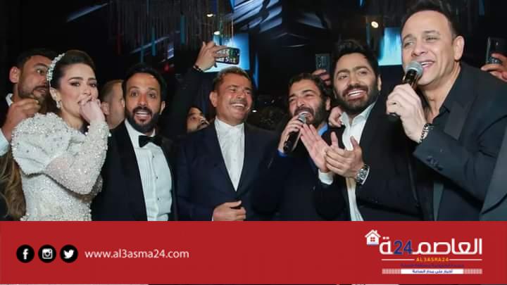شاهد بالصور : عمرو دياب وتامر حسني يشاركن بالغناء فى حفل زفاف الفنان أحمد عصام