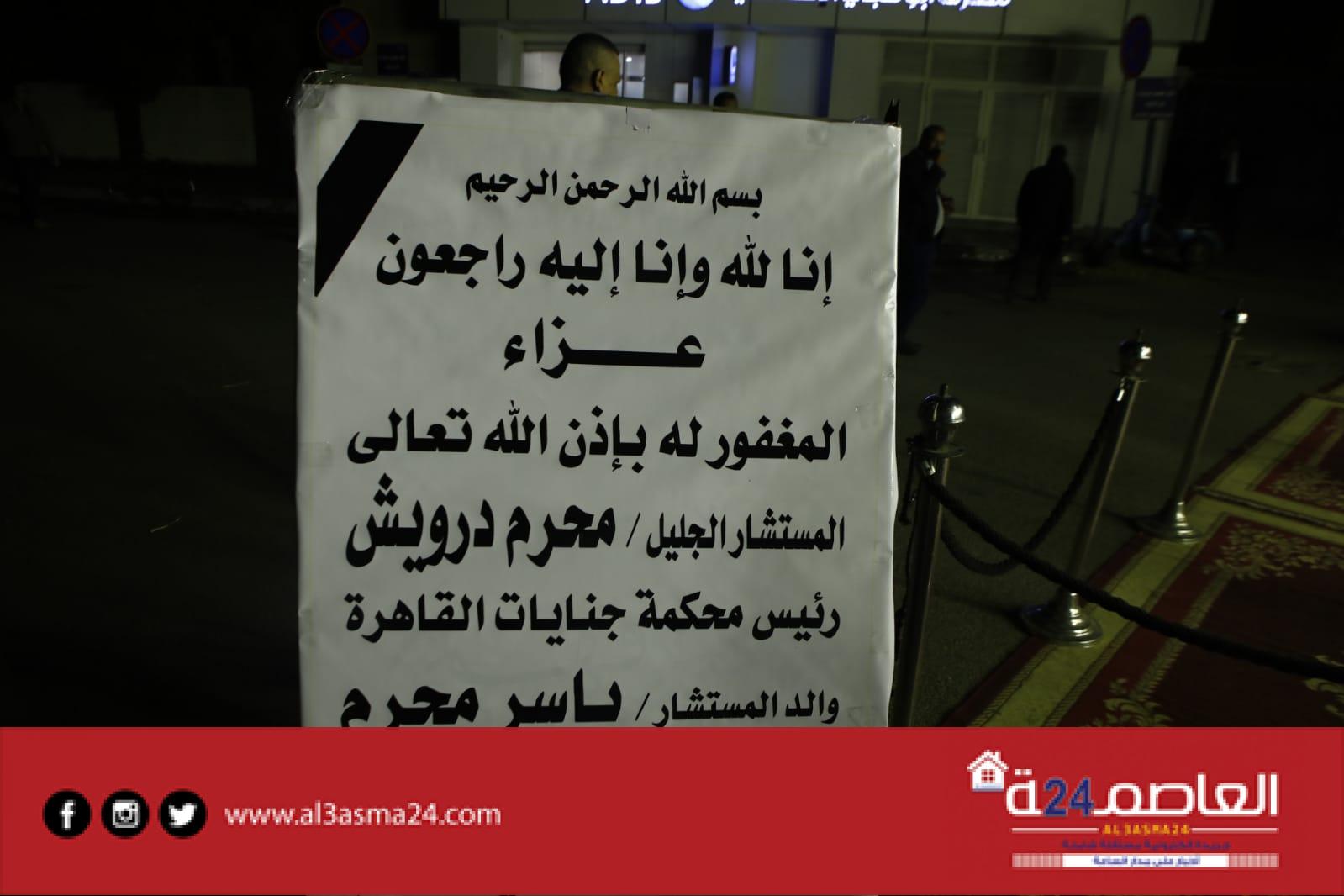وكان يستقبل واجب العزاء نجله المستشار ياسر محرم درويش رئيس محكمة جنايات أمن الدولة طوارئ
