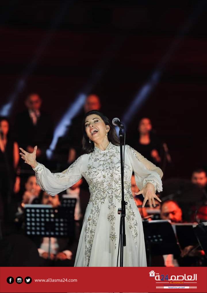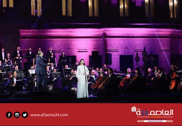 وأطلت ماجدة الروحي قبيل حفلها مباشرة من شرفة قصر عابدين مرتدية فستانا أبيض كالأميرات وألقت تحية للحضور وسط عاصفة من التصفيق الحار، وبعدها توجهت إلى خشبة المسرح بجوار الفرقة الموسيقية بقيادة الموسيقار العالمي نادر عباسي