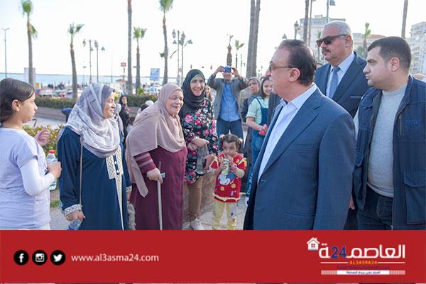 وخلال جولته بالكورنيش والمتنزهات تبادل المحافظ التهنئة مع المواطنين، مؤكدا على تكثيف الاستعدادات بكافة أجهزة المحافظة خلال الاحتفال بالعيد.