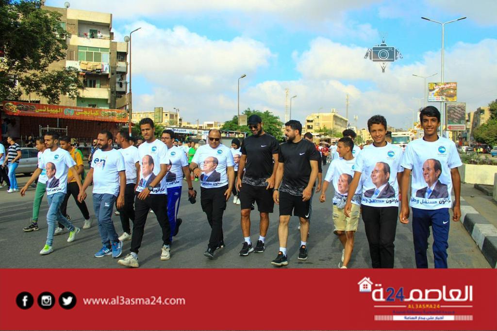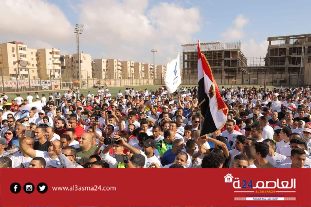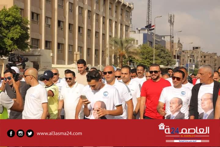 وانطلق ماراثون مستقبل وطن، في تمام الساعة الثامنة صباحاً، بمشاركة 1000 متسابق ومتسابقة، لمدة نصف ساعة سيراً علي الأقدام، من المقطم إلي الإسمرات