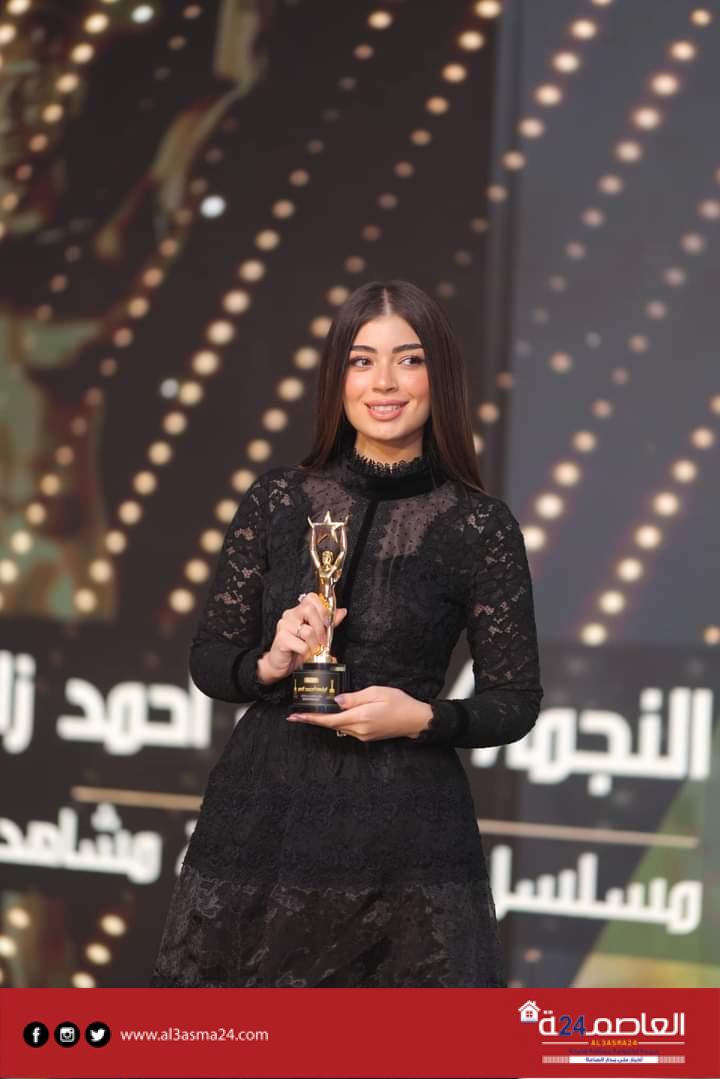 وظهرت الفنانة مي عمر بإطلالة ترتدي فيها فستان باللون الأبيض والأسود خطفت بها الأنظار خلال الحفل، وكذلك النجم أحمد زاهر الذي حصد عدة جوائز هو وبناته ليلي وملك أحمد زاهر وأصغر أبنائه مني أحمد زاهر