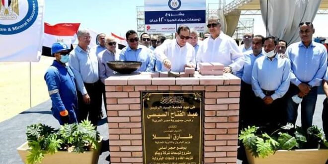 وضع المهندس طارق الملا وزير البترول والثروة المعدنيـة حـجـر الأسـاس لتوسعات منطقـة ميناء الحمـراء البترولى والمتمثلة في قطعـة الأرض الشاطئية علي مساحة ١٢٠ فـداناً بهـدف زيادة السعة التخزينيـة لتسهيلات الميناء بإضافة 4 مستودعات تخزين سعة 630 ألف برميـل خام لكل منها ، للوصـول لسعة تخزينية 3ر5 مليون برميـل لتسهيل حركـة تـداول واستقبال الزيت الخـام بمينـاء الحمـراء، بالإضـافة إلى قطعـة الأرض ٤٢٠ فـداناً المجـاورة لمنطقـة مينـاء الحـمـراء والـتـي سـيتم استغلالها كمنطقة لتـداول المنتجـات البتروليـة ومحطـة للشحن لخدمـة توسعات منطقة العلمين والمساهمة في تنميـةالمجتمع العمراني الجديد والظهير الصناعى والزراعى بمدينة العلمين
