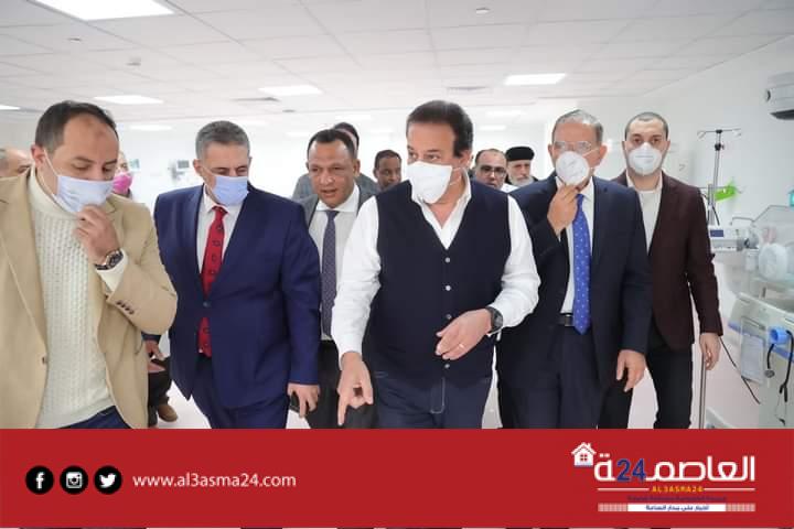 وتابع «عبدالغفار» أن الوزير تفقد غرف المرضى وقسم الحضانات، واطمأن على حالة الأطفال المبتسرين، موجها بتوفير عدد 7 حضانات إضافية لترتفع الطاقة الاستيعابية إلى 17 حضانة، كما تفقد الوزير وحدة الغسيل الكلوي، موجها باستبدال الأسرة بالكراسي المخصصة لجلسات الغسيل الكلوي، وذلك لضمان تقديم الخدمة لعدد أكبر من المرضى