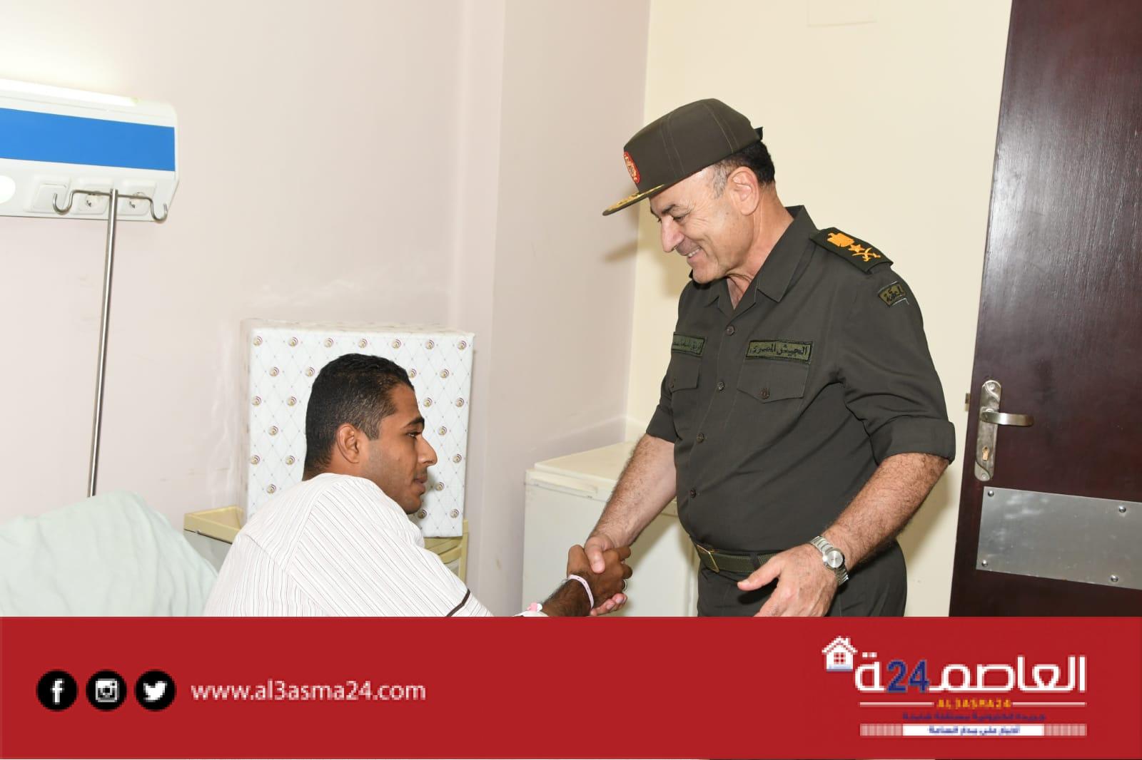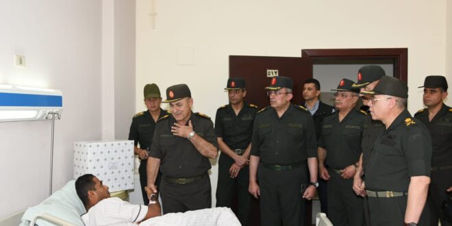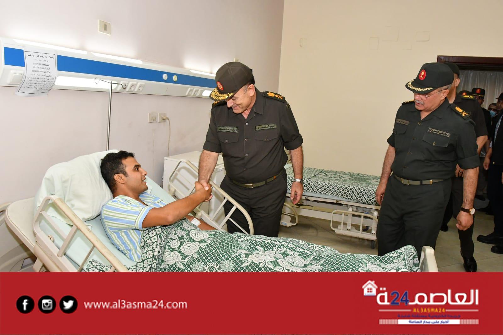قام الفريق أسامة عسكر رئيس أركان حرب القوات المسلحة بزيارة لعدد من مصابى العمليات الحربية من الضباط وضباط الصف والجنود من أبطال القوات المسلحة الذين يخضعون للعلاج حالياً بالمجمع الطبى للقوات المسلحة بكوبرى القبة وقد أصيبوا أثناء أدائهم لمهامهم فى التصدى للإرهاب بشمال سيناء للإطمئنان على حالتهم الصحية