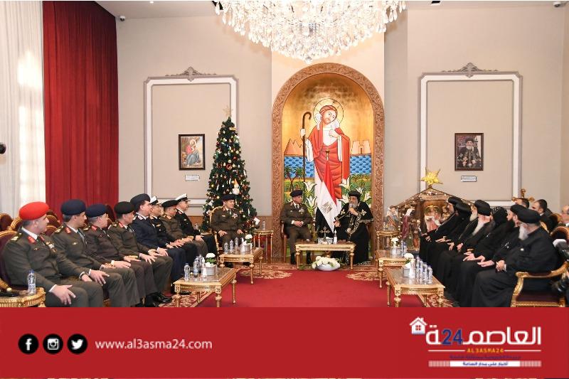 قام الفريق أول محمـد زكي القائد العام للقوات المسلحة وزير الدفاع والإنتاج الحربي يرافقه الفريق أسامة عسكر رئيس أركان حرب القوات المسلحة وقادة الأفرع الرئيسية وعدد من قادة القوات المسلحة بتقديم التهنئة لقداسة البابا تواضروس الثاني بابا الإسكندرية بطريرك الكرازة المرقسية بمناسبة عيد الميلاد المجيد وذلك بمقر الكاتدرائية المرقسية بالعباسية