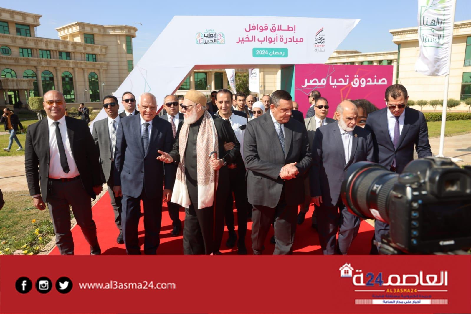 وفقًا لتوجيهات الرئيس عبد الفتاح السيسي رئيس الجمهورية “أطلق صندوق تحيا مصر اليوم، الأحد، قوافل مبادرة أبواب الخير لتوفير المواد الغذائية الجافة لنحو 5 ملايين مواطن من الأسر الأولى بالرعاية استعدادًا لاستقبال شهر رمضان المعظم، جاء ذلك بحضور اللواء هشام آمنة وزير التنمية المحلية واللواء أحمد راشد، محافظ الجيزة، وتامر عبد الفتاح، المدير التنفيذي لصندوق تحيا مصر، والدكتورة سحر نصر، مستشار فضيلة الإمام الأكبر شيخ الأزهر-المدير التنفيذي لبيت الزكاة والصدقات، والدكتور علي جمعة، رئيس مجلس أمناء مؤسسة مصر الخير، واللواء ممدوح شعبان، مدير عام جمعية الأورمان، والدكتور مصطفى إسماعيل، الأمين العام للجمعية الشرعية، والدكتورة نوال الدجوي، رئيس مجلس أمناء جامعة أكتوبر للعلوم الحديثة والآداب والدكتور سامر يوسف وحرمه المهندسة رباب عبد العاطي والمذيعة بوسي شلبي وأميرة مختار أبنة الفنانة الراحلة رجاء الجداوي ونخبة من قيادات البنوك ورجال الأعمال والشخصيات العامة، وذلك تنفيذًا لتوجيهات الرئيس عبد الفتاح السيسي، بتكثيف أنشطة الصندوق للحماية الاجتماعية لتخفيف العبء عن كاهل الأسر الأولى بالرعاية والوصول إليهم وتلبية احتياجاتهم الأساسية، بمختلف أنحاء جمهورية مصر العربية
