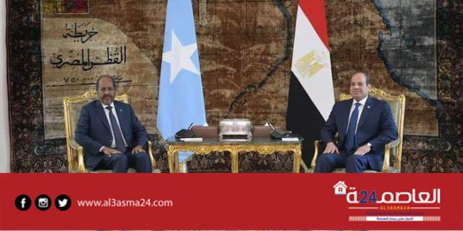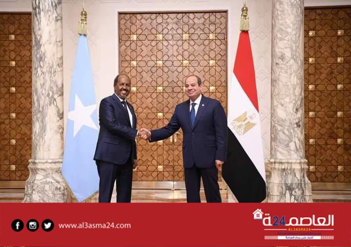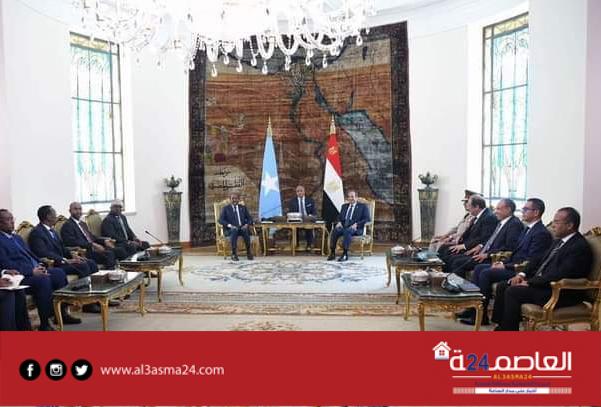وقد عقد الرئيسان جلسة مباحثات تم خلالها تأكيد قوة ومتانة العلاقات التاريخية بين مصر والصومال، والحرص المشترك على تدعيمها على مختلف الأصعدة، والبناء على نتائج زيارة الرئيس الصومالي الأخيرة لمصر في يناير الماضي