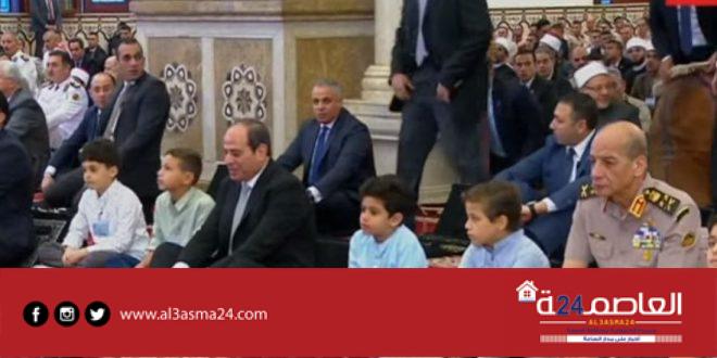 ادي الرئيس عبدالفتاح السيسي رئيس الجمهورية صلاة عيد الفطر المبارك منذ قليل بمسجد المشير طنطاوى بالتجمع الخامس