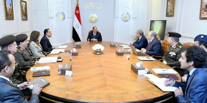 اجتمع الرئيس عبد الفتاح السيسي اليوم الثلاثاء مع الدكتور مصطفى مدبولي رئيس مجلس الوزراء، والدكتور على المصيلحي وزير التموين والتجارة الداخلية، والدكتورة هالة السعيد وزيرة التخطيط والتنمية الاقتصادية، والسيد السيد القصير وزير الزراعة واستصلاح الأراضي، واللواء أحمد الشاذلي رئيس هيئة الشئون المالية للقوات المسلحة، واللواء أ.ح وليد أبو المجد مدير عام جهاز مشروعات الخدمة الوطنية للقوات المسلحة، واللواء أحمد العزازي رئيس الهيئة الهندسية للقوات المسلحة، والعقيد طيار بهاء الغنام المدير التنفيذي لجهاز مستقبل مصر للتنمية المستدامة.