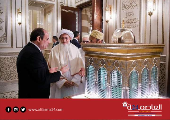 وقام الرئيس السيسي عقب وصوله بأداء صلاة “تحية المسجد”، وبثت صفحة المتحدث الرسمي لرئاسة الجمهورية فيلما قصيرا عن أعمال تطوير المسجد