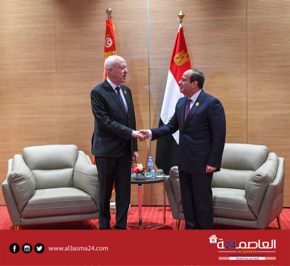 التقى الرئيس عبدالفتاح السيسي، اليوم الأربعاء، مع الرئيس قيس سعيد، رئيس الجمهورية التونسية، وذلك على هامش مشاركته في القمة العربية في الجزائر