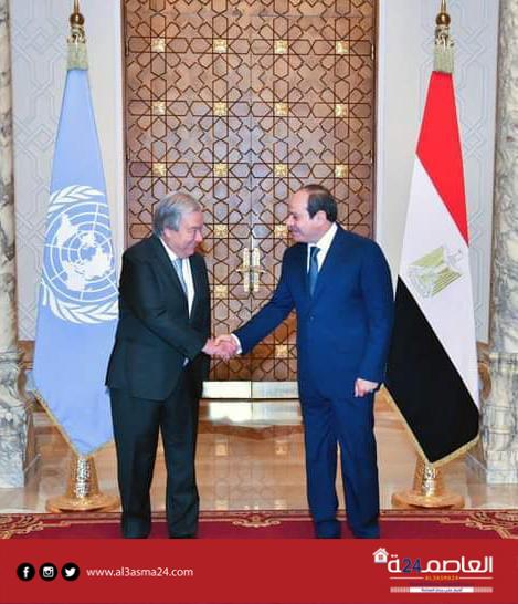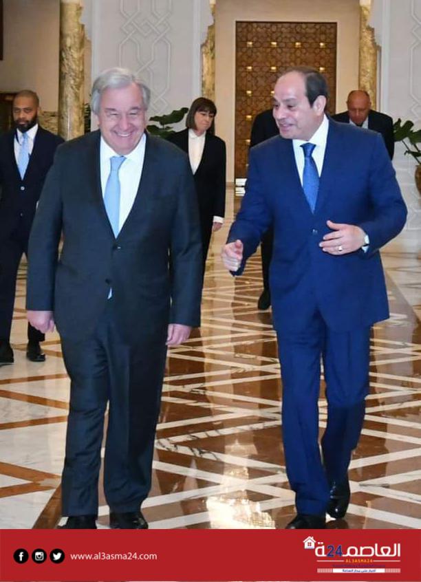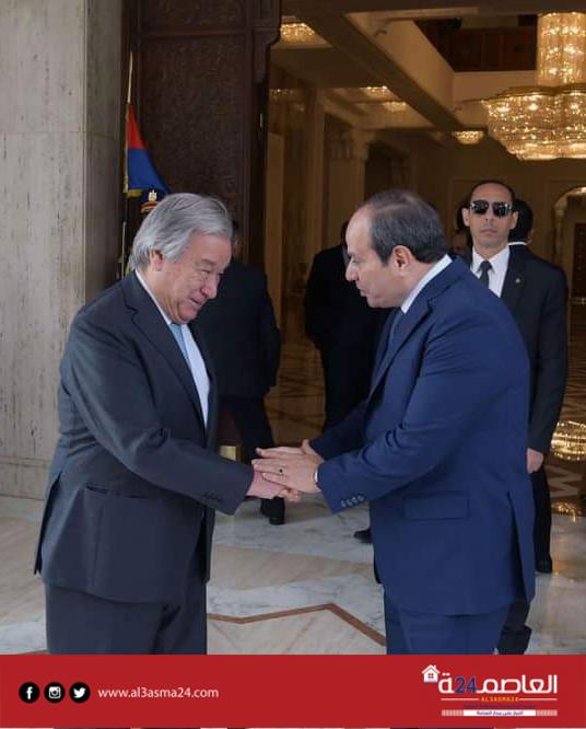وذكر المتحدث الرسمي أن اللقاء شهد تطابقاً في المواقف بشأن خطورة الموقف وضرورة تجنب تغذية العوامل المؤدية لاتساع نطاق الصراع، وكذلك الرفض التام والقاطع لتهجير الفلسطينيين من أراضيهم، ورفض والتحذير من أي عملية عسكرية في رفح الفلسطينية، بما لها من تبعات كارثية على الوضع المتدهور بالفعل، كما شدد السيد الرئيس والسكرتير العام للأمم المتحدة على حتمية حل الدولتين كمسار وحيد لتحقيق العدل والأمن والاستقرار بالمنطقة وضرورة تهيئة الظروف الملائمة لتفعيله