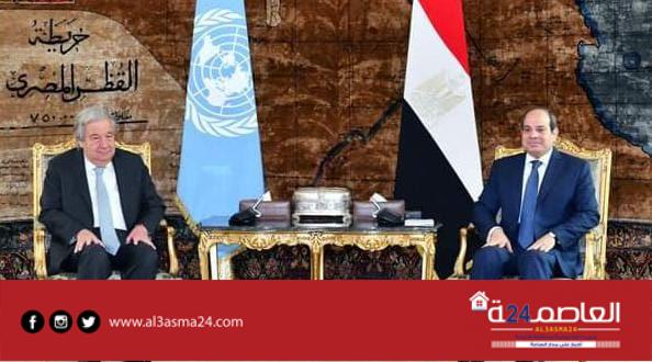 وذكر المتحدث الرسمي أن اللقاء شهد تطابقاً في المواقف بشأن خطورة الموقف وضرورة تجنب تغذية العوامل المؤدية لاتساع نطاق الصراع، وكذلك الرفض التام والقاطع لتهجير الفلسطينيين من أراضيهم، ورفض والتحذير من أي عملية عسكرية في رفح الفلسطينية، بما لها من تبعات كارثية على الوضع المتدهور بالفعل، كما شدد السيد الرئيس والسكرتير العام للأمم المتحدة على حتمية حل الدولتين كمسار وحيد لتحقيق العدل والأمن والاستقرار بالمنطقة وضرورة تهيئة الظروف الملائمة لتفعيله