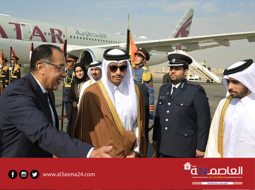 عاجل | رئيس الوزراء يستقبل رئيس وزراء دولة قطر بمطار القاهرة الدولي | صور
